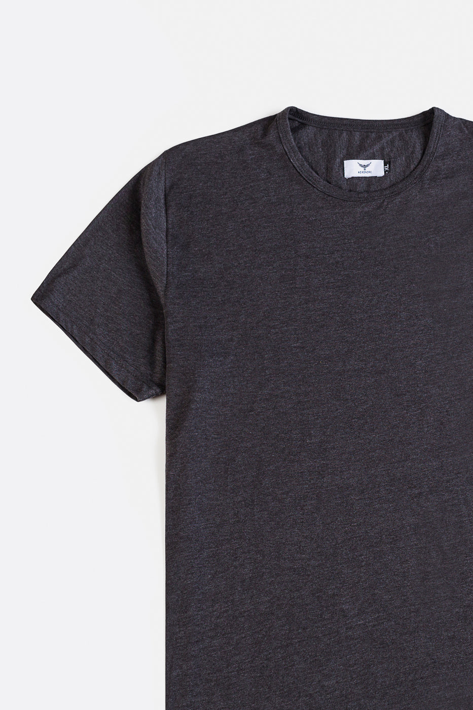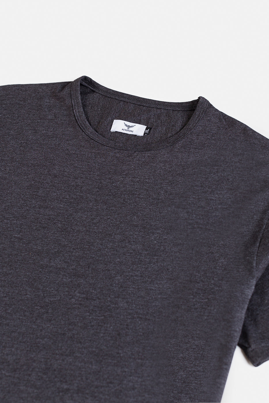 A crew neck smart fit T-shirt is a form-fitting garment made of cotton with a round double fold neckline that sits at the base of the neck. It is designed to fit snugly to the body without being tight or restrictive, providing a sleek and stylish appearance. The cotton material offers breathability and comfort, making it suitable for both casual and active wear.