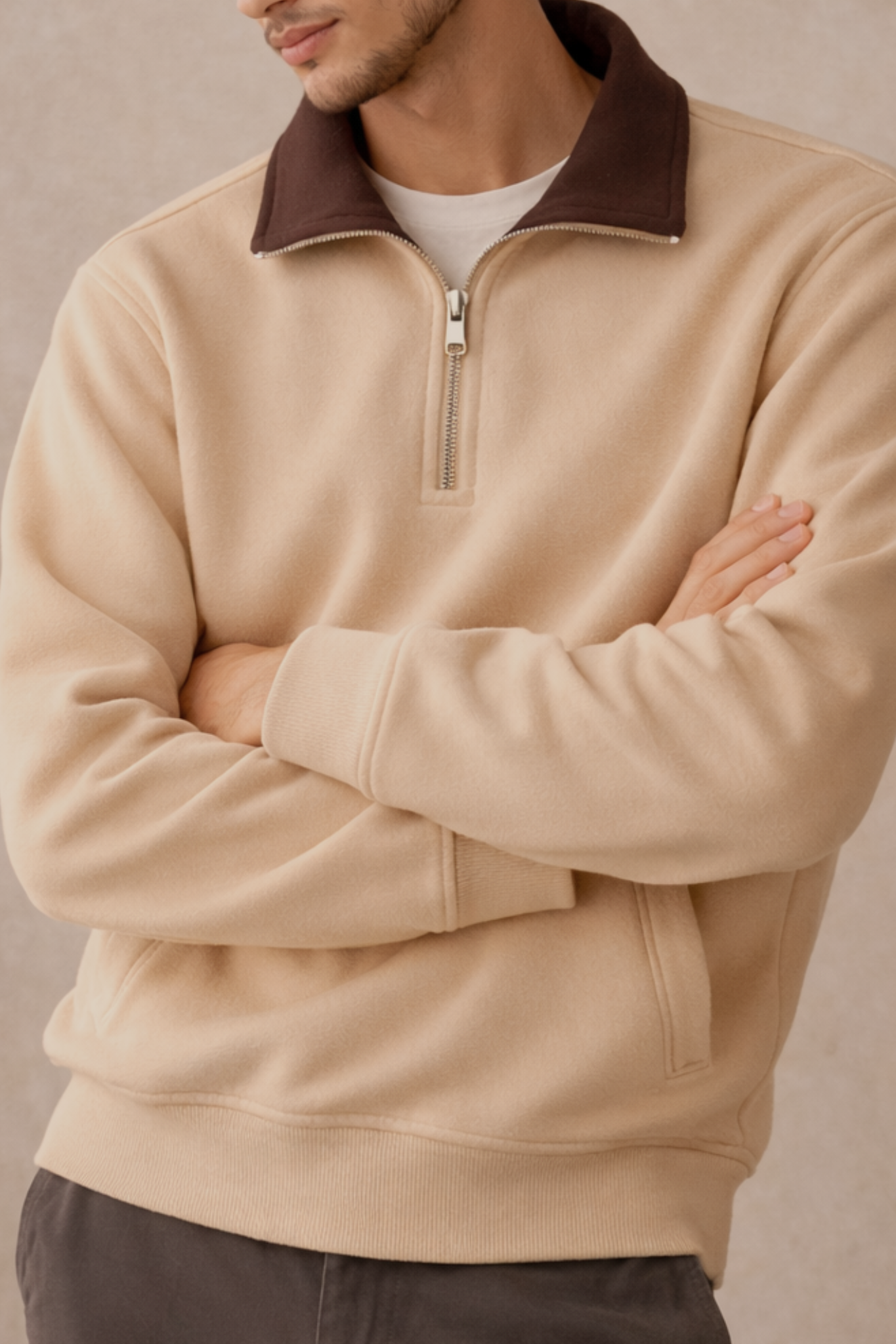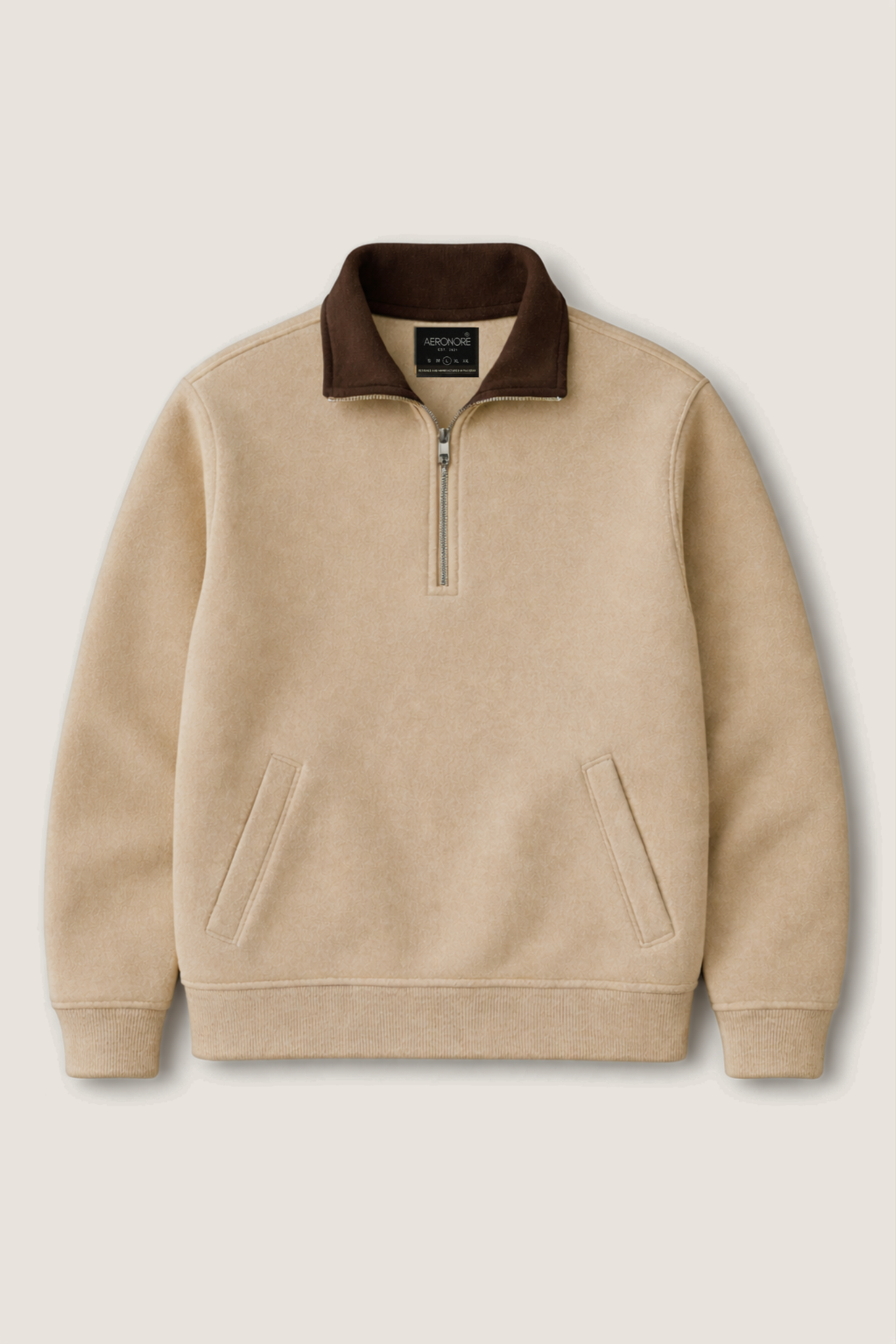 Elevate your essentials with this Half-Zip Cotton Fleece Pullover, crafted from soft 320 GSM cotton fleece for warmth and comfort. Designed in an oversized fit, it features a sleek half-zip front and a refined navy blue fleece lining on the inner collar for a subtle contrast.