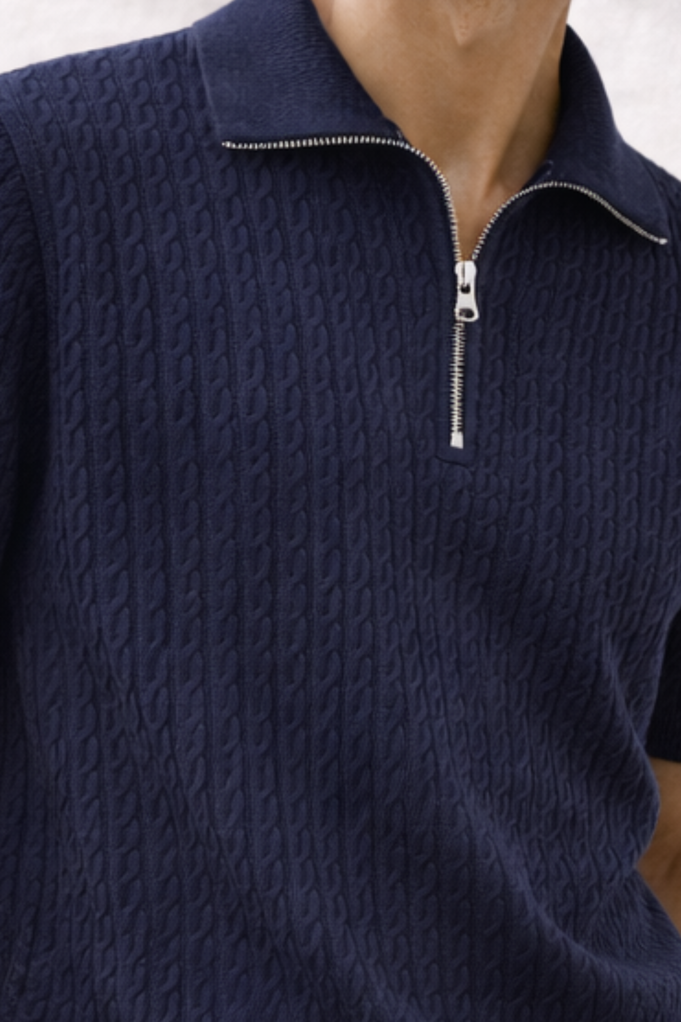 A refined essential built with texture and structure. The Cotton Cable Half-Zip Polo – Royal Navy features a vertically structured cable knit that adds depth without overpowering the silhouette. Crafted from breathable cotton, it offers a soft yet substantial hand feel—ideal for transitional dressing and elevated everyday wear.