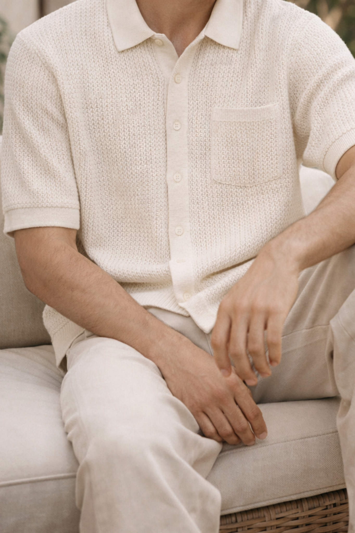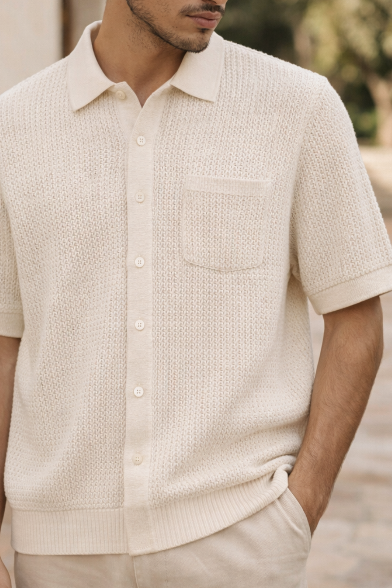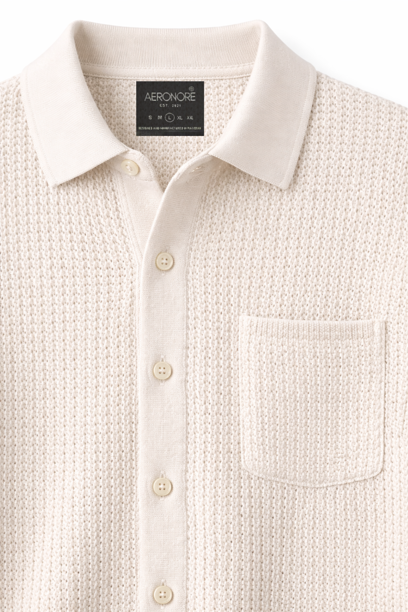 Made from 100% cotton, this mesh knit button shirt blends breathable comfort with understated sophistication. The open-texture knit allows airflow while retaining a structured, premium look—ideal for warm-weather wear and relaxed styling.