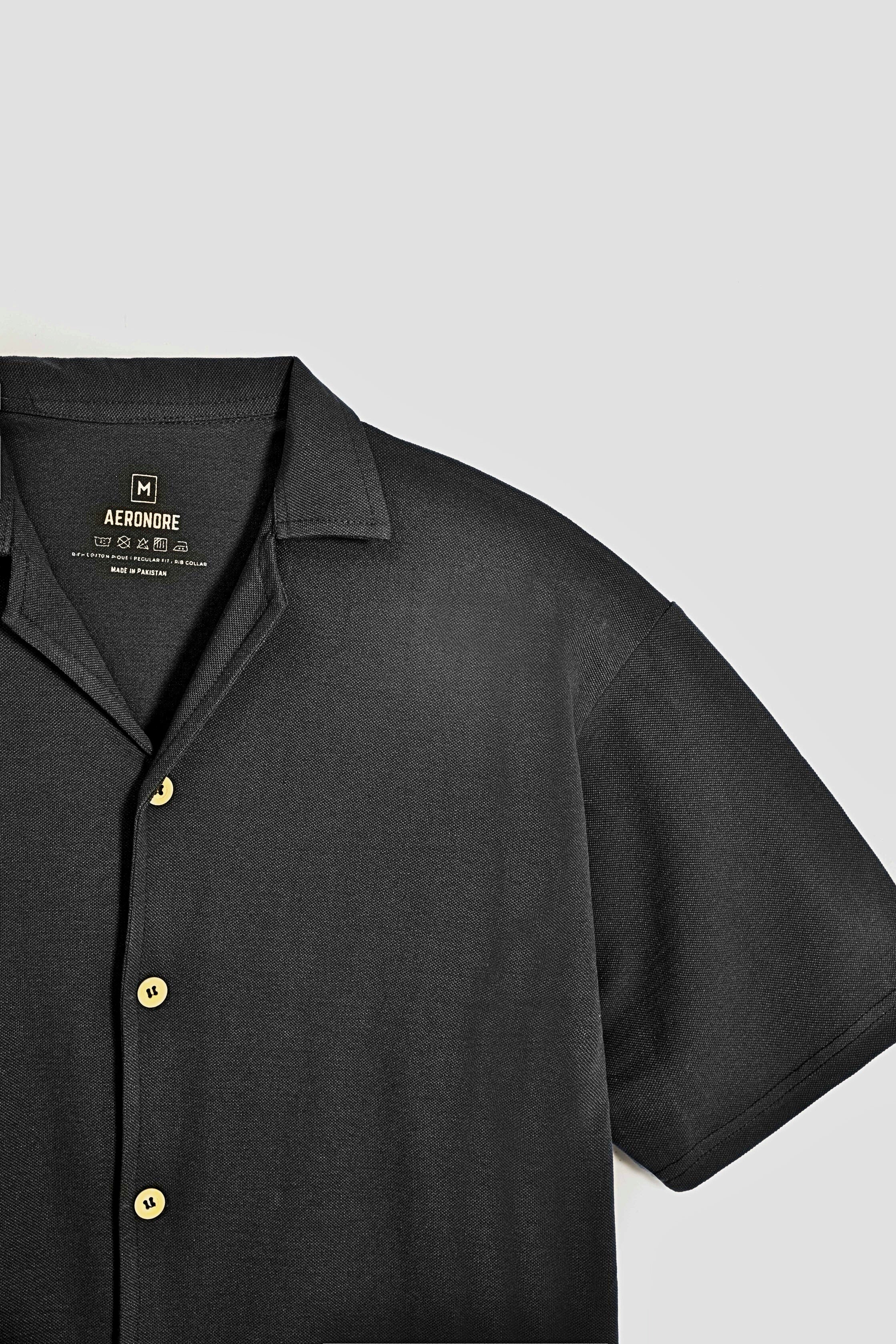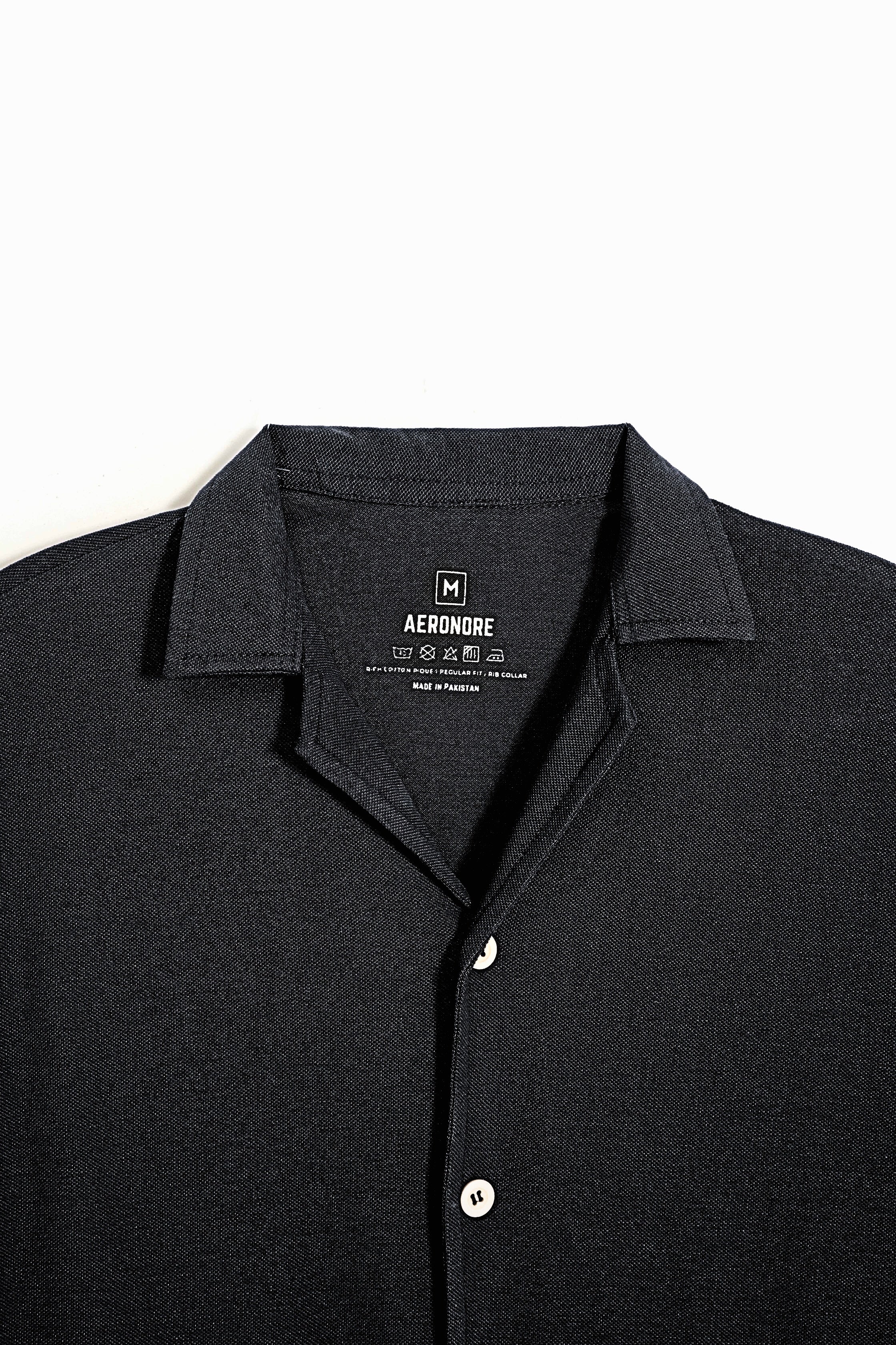 Cotton Pique Resort Collar Shirt - Nordic Coal