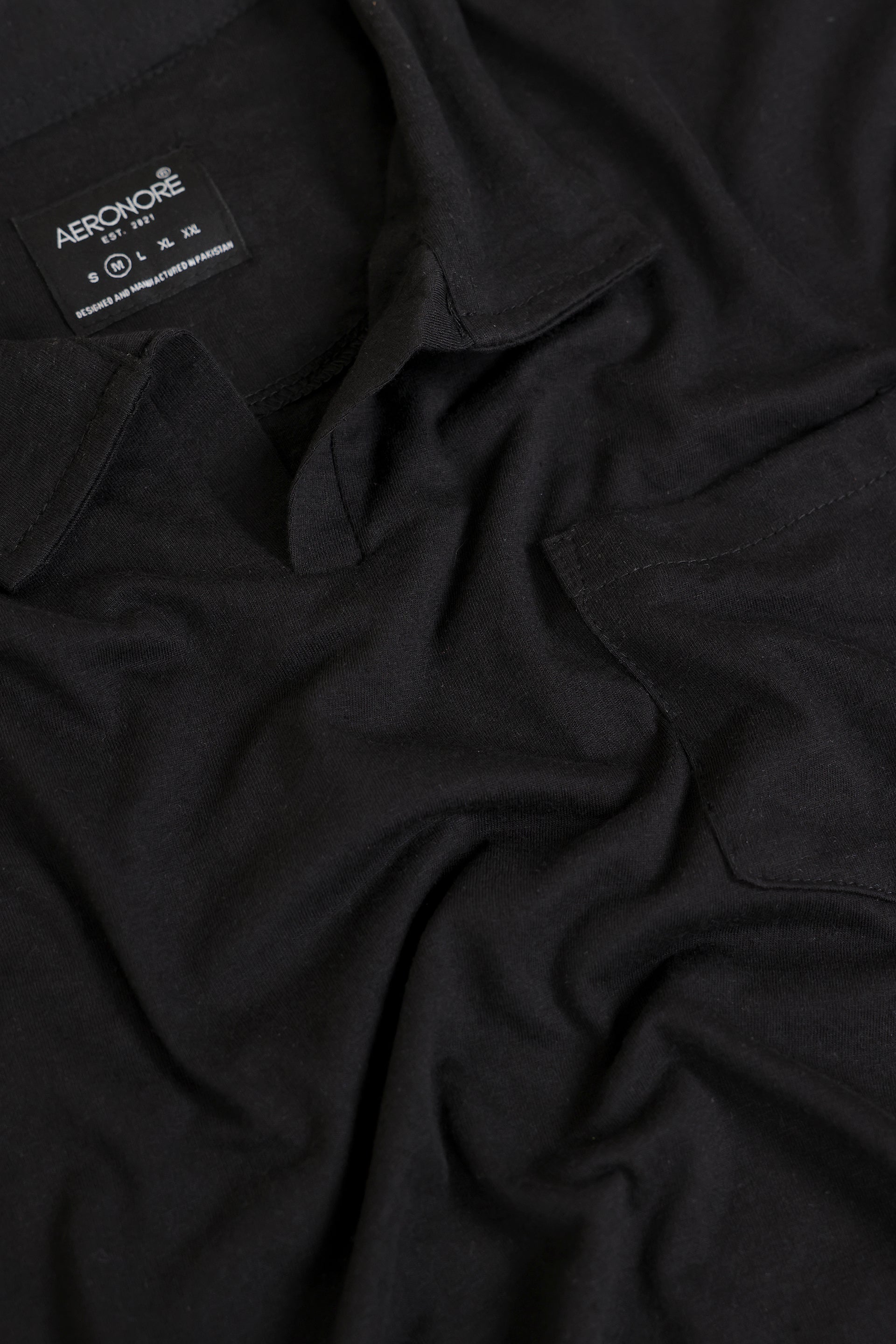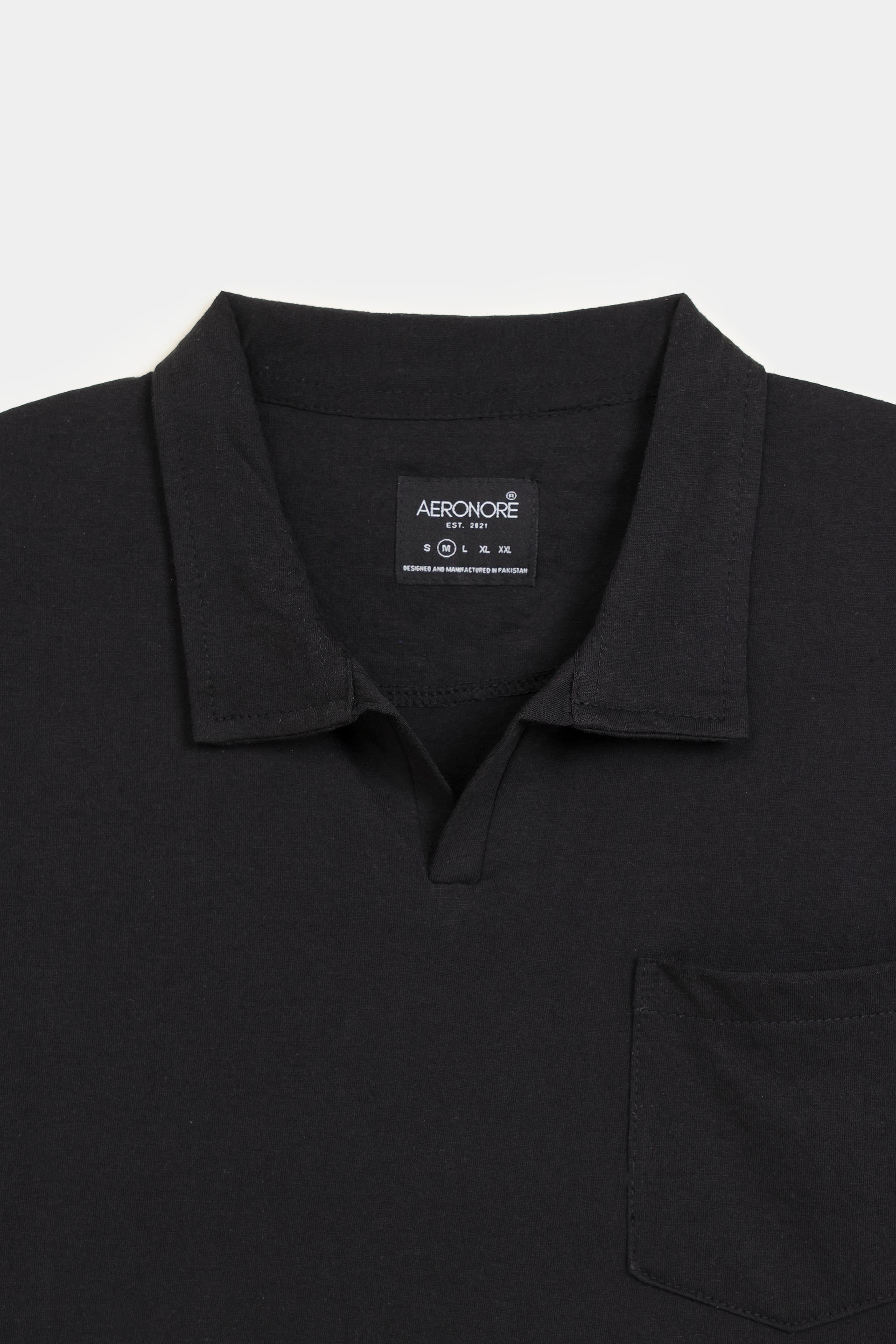 Cotton Relax Fit Pocket Polo - Midnight Black