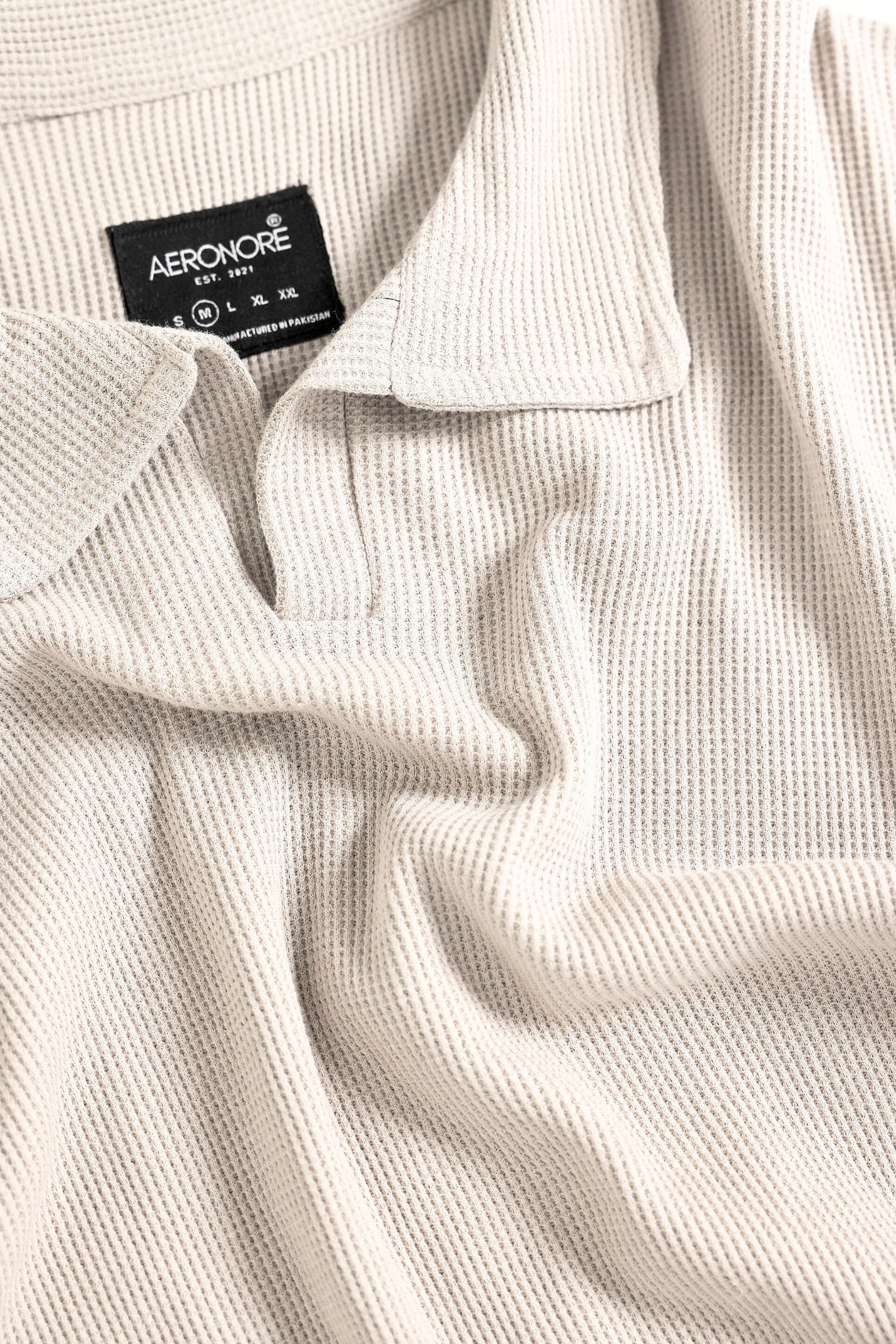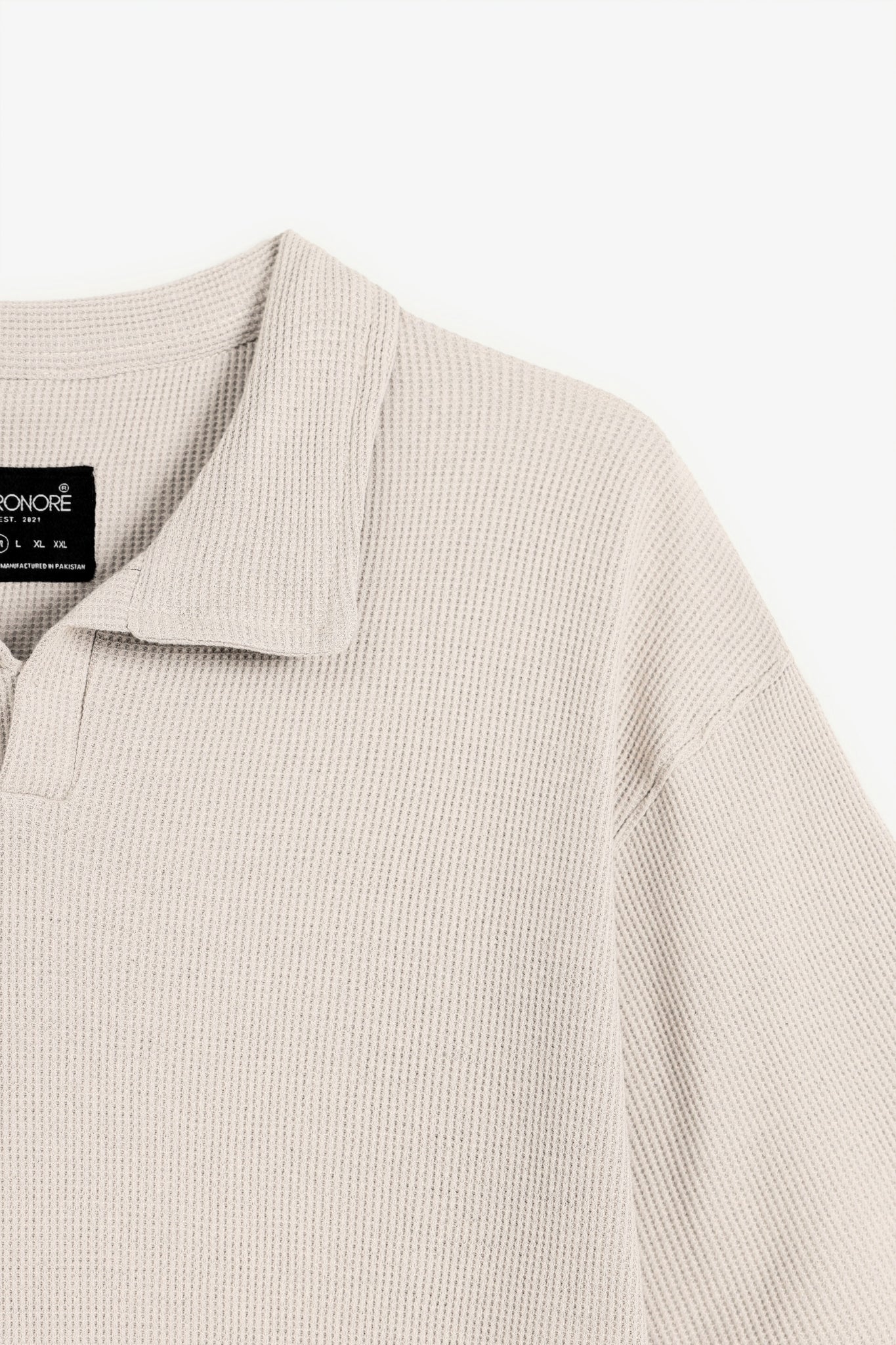 This Oversized, waffle knit polo shirt is the perfect garment for your old money attire. It is manufactured using premium blended waffle knit fabric and features a self-collar with a trendy buttonless placket. Designed to provide comfort and style, this premium piece of clothing is perfect for semi-formal and casual settings.