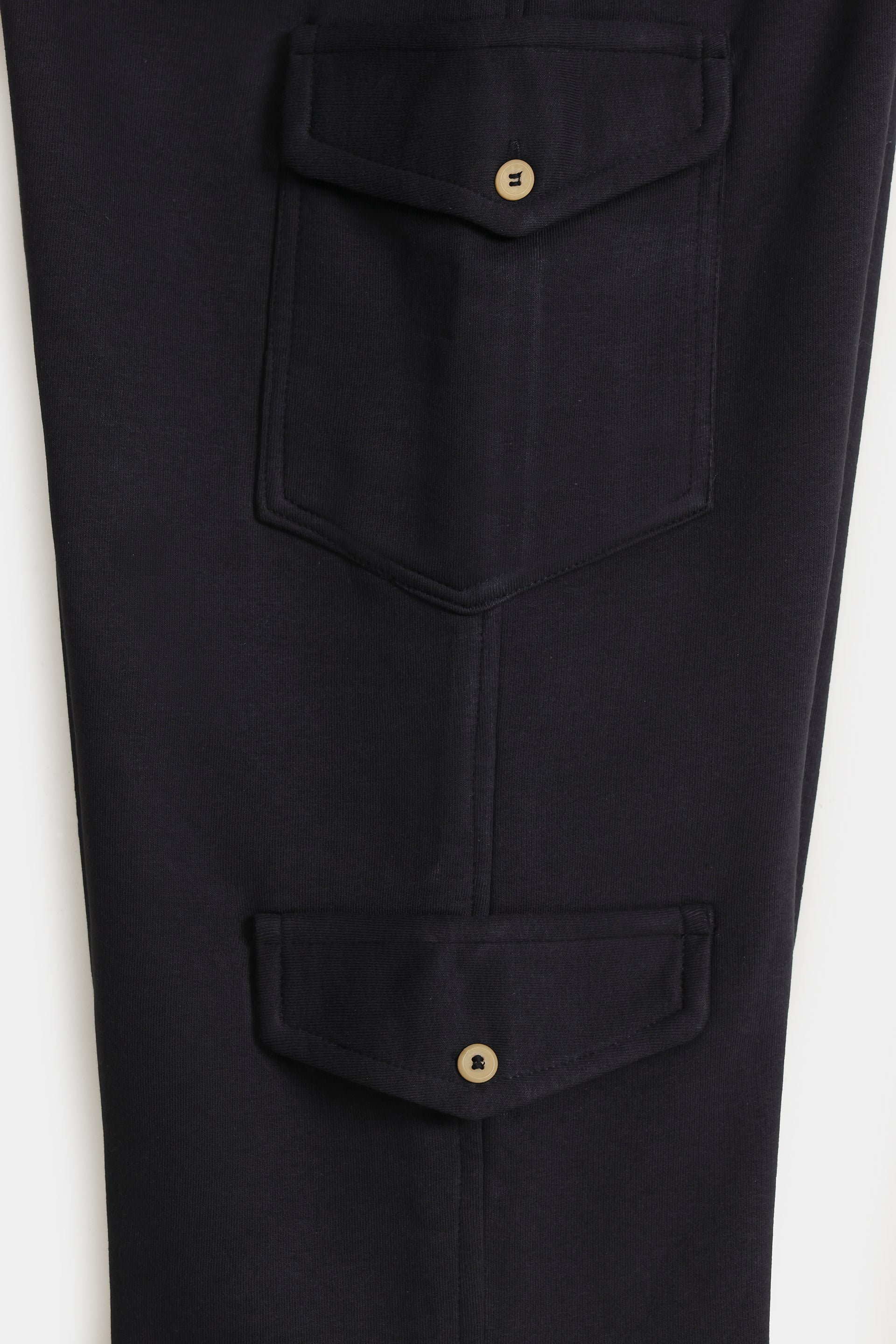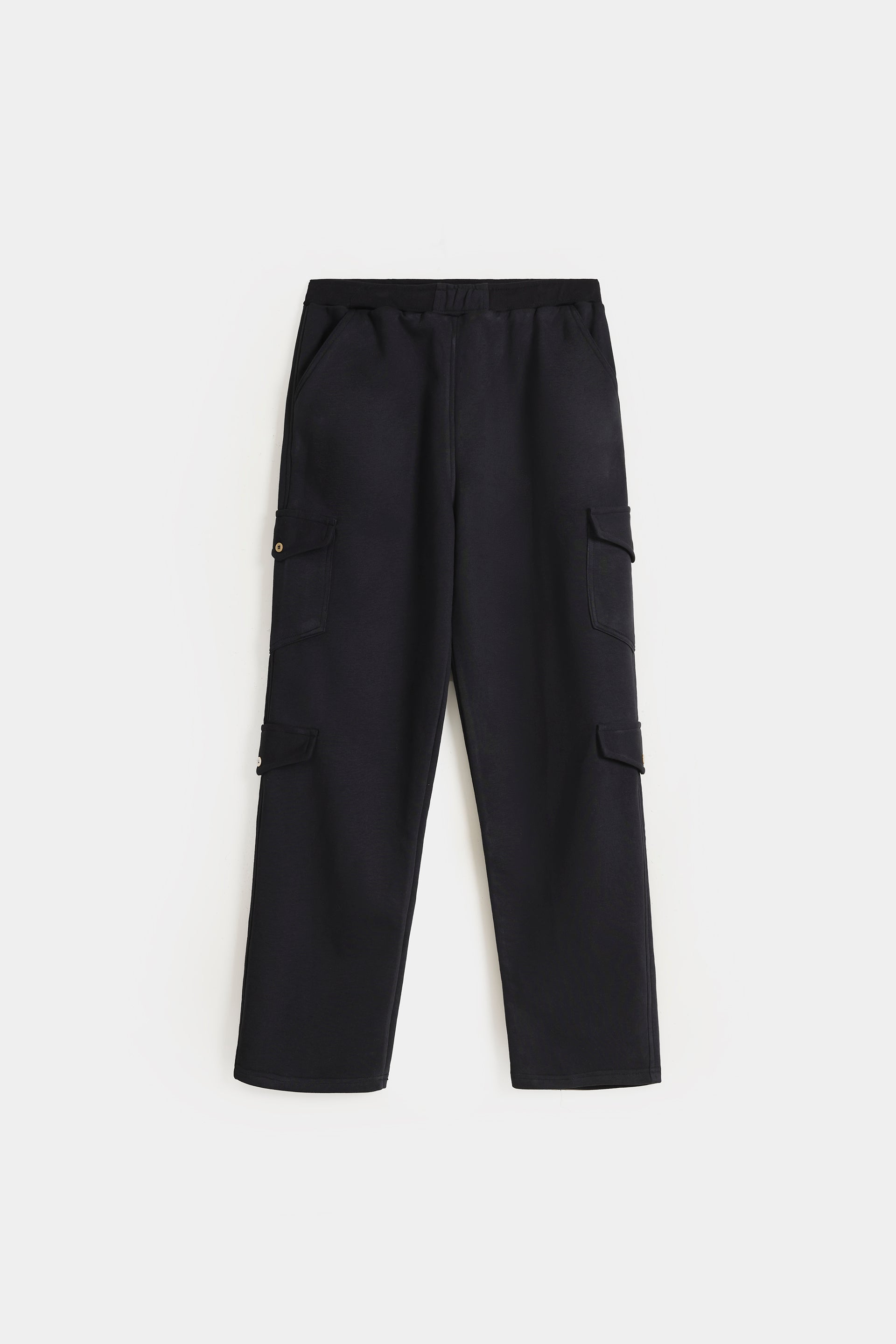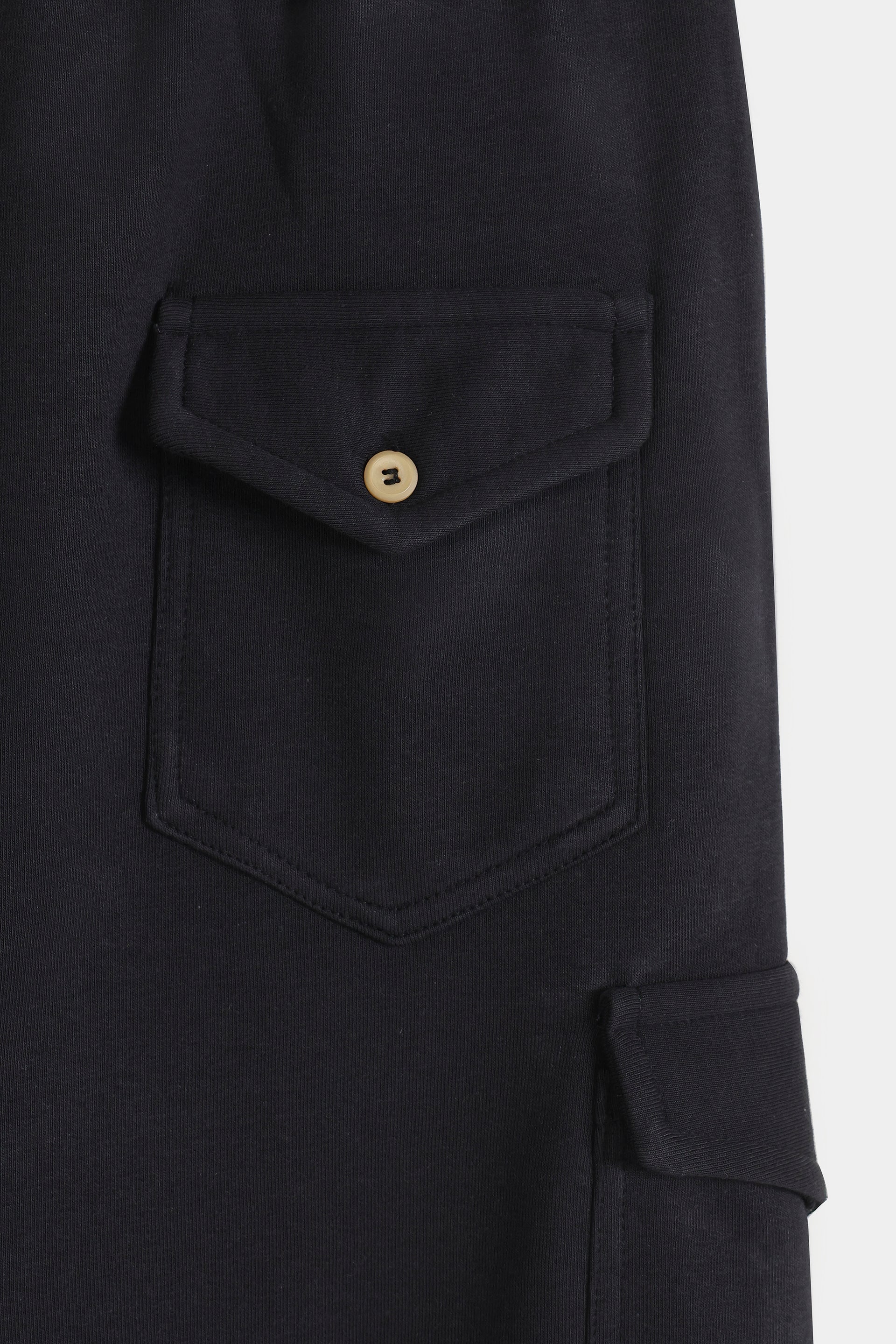 Cotton Terry Cargo Pants - Raven Black