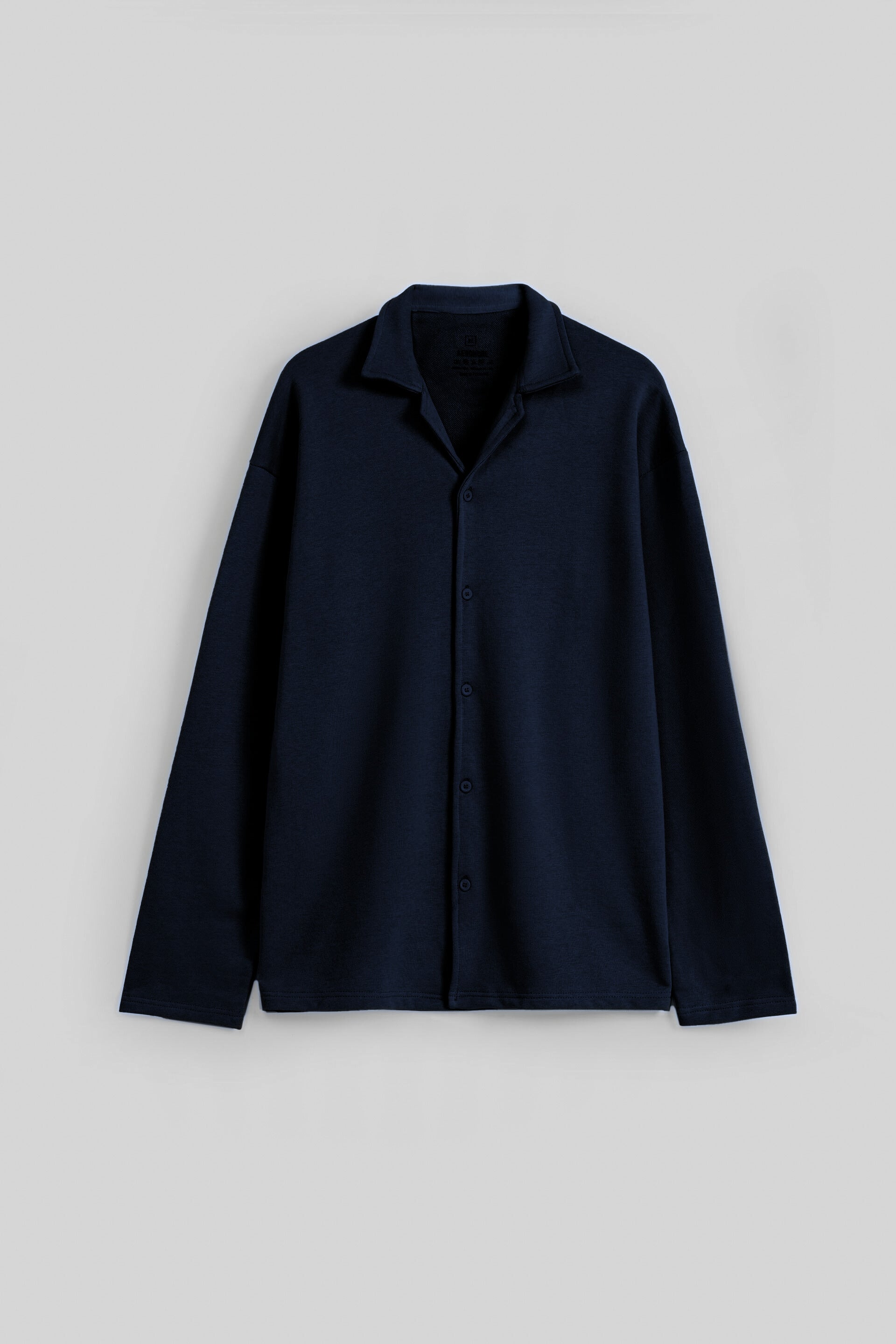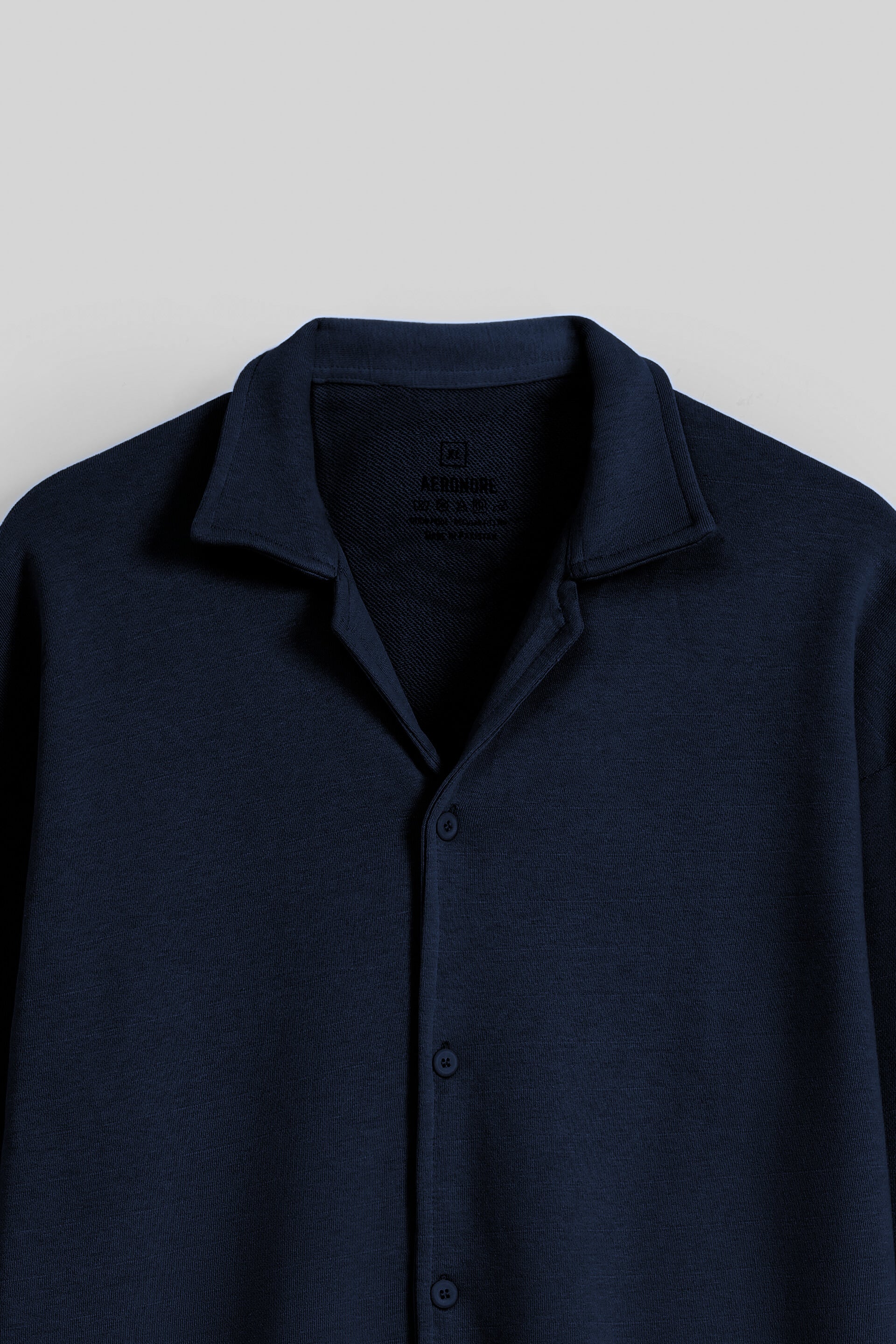 Cotton Terry Resort Collar Full Shirt - Royal Navy