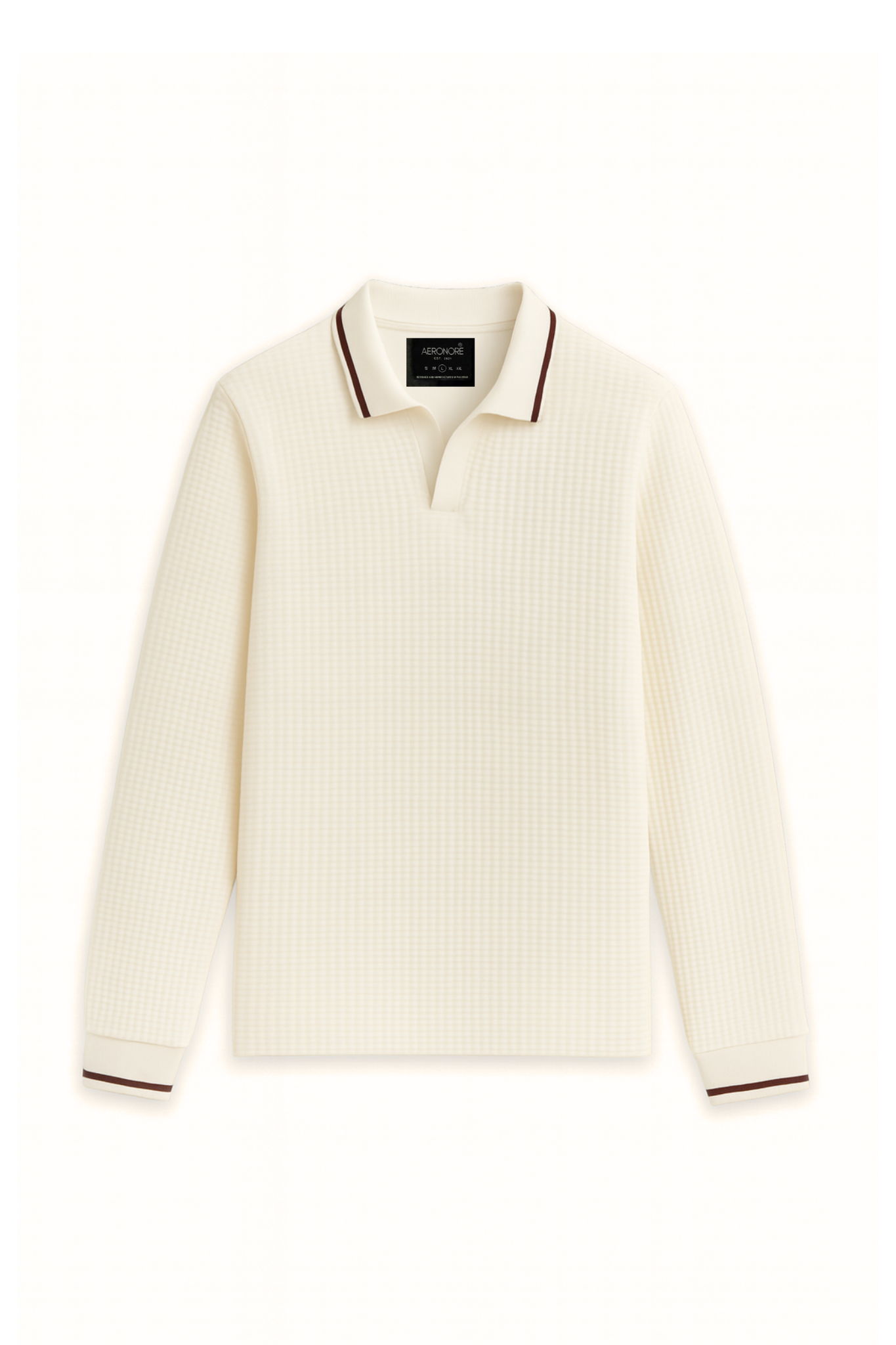 Cotton Waffle Knit Tipping Full Polo - Ivory