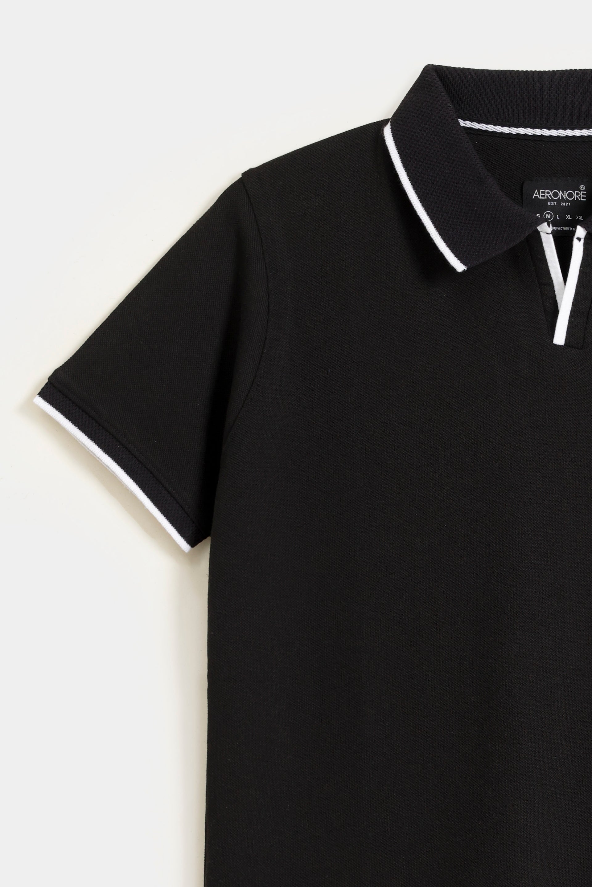 Everlasting cotton pique polo designed with matching Jacquard, Bird eye Collar collar and a modern V piped placket. This premium polo can be tucked in for a formal appearance or left untucked for a smarter casual look.