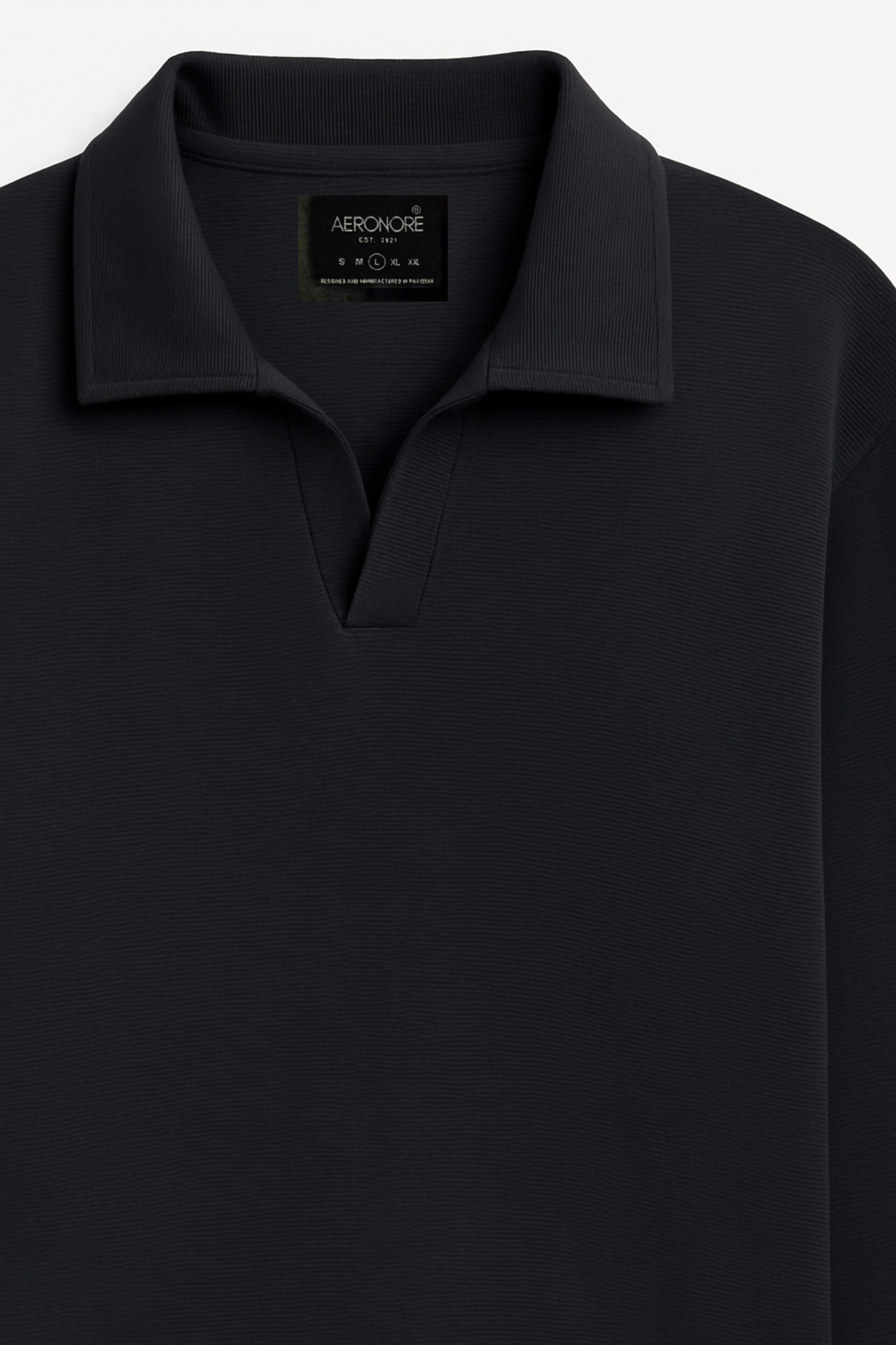This Oversized, button-less polo shirt is an all-season garment. It is manufactured using premium cotton blended ottoman fabric and features a self-collar, with a trendy button-less placket. Designed to provide comfort and style, this premium piece of clothing is perfect to wear in semi-formal and casual settings.