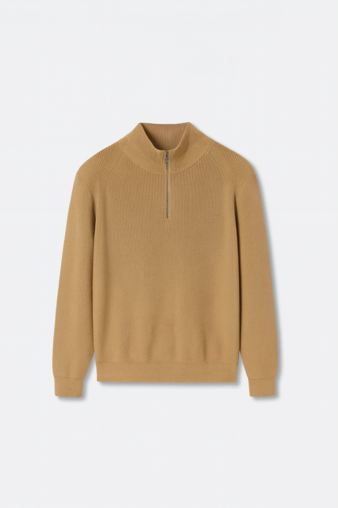 Oversized Rib Cotton Half Zip Sweater - Dune