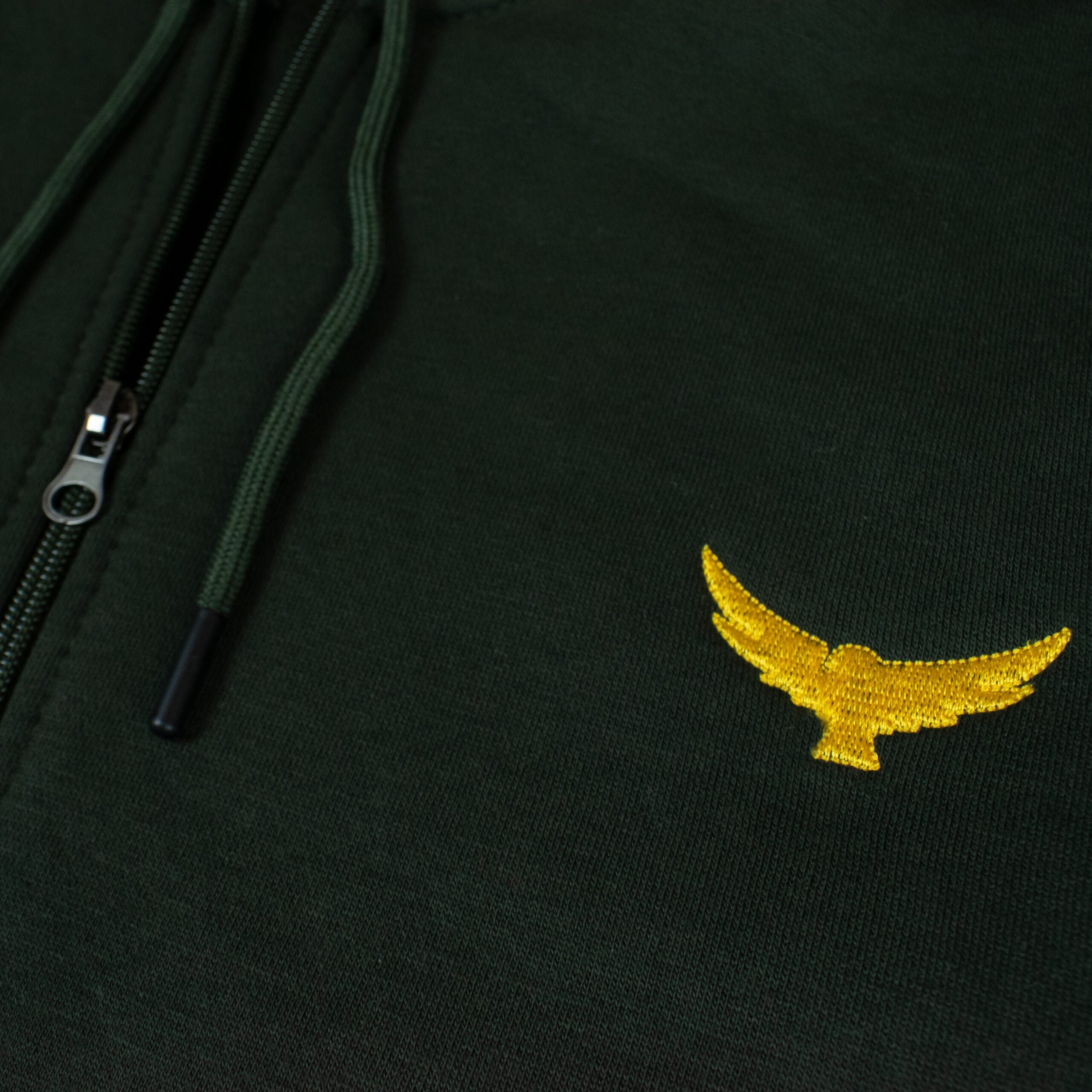 Our Signature Gold Eagle Zip Hoodies are the most comfortable ones you will find, and they look amazingly good. Our Rich Cotton Fleece offers comfort of softness and a very sleek posture. A subtle radiance of the fabric speaks of the premium quality of the garment.