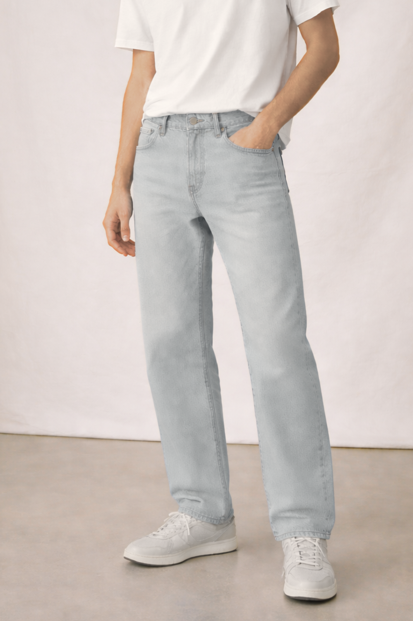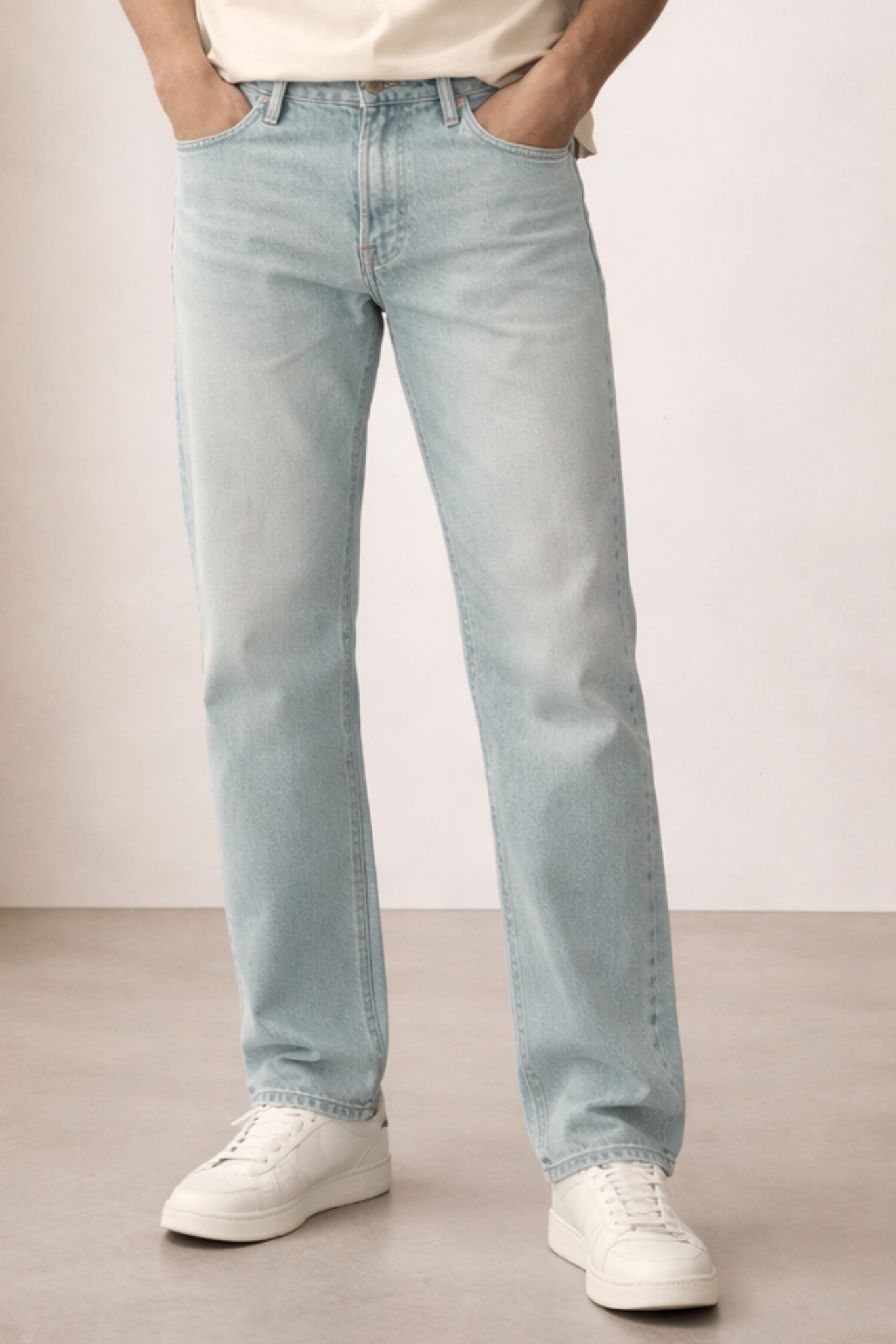 The Rugged Straight-Fit Denim Jeans – Soft Light Blue Wash are designed with a relaxed, sun-faded look that delivers an easy, everyday appeal. Crafted from non-stretch, rugged denim, this pair maintains a structured feel while offering durability that holds up over time.